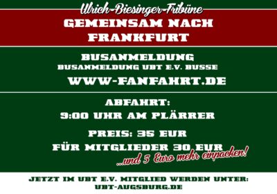 Am vergangenen Dienstag fand im Zeughaus Augsburg die jährliche Mitgliederversammlung des Ulrich-Biesinger-Tribüne e.V. statt. Nach einer herzlichen Begrüßung durch die Vorstandschaft blickten die Anwesenden gemeinsam auf ein ereignisreiches Vereinsjahr zurück. Neben den traditionellen, vom UBT e.V. organisierten Auswärtsreisen – Buskonvoi und Sonderzug – standen in diesem Jahr vor allem strukturelle Veränderungen im erweiterten Vorstand, die Zusammenarbeit mit der FCA-Geschäftsstelle in […]